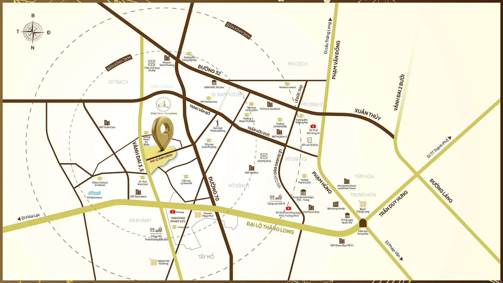 An Lạc Green Symphony có tổng diện tích khoảng 70ha, được quy hoạch đồng bộ với nhiều loại hình sản phẩm đa dạng, bao gồm biệt thự, liền kề, shophouse và chung cư cao tầng.